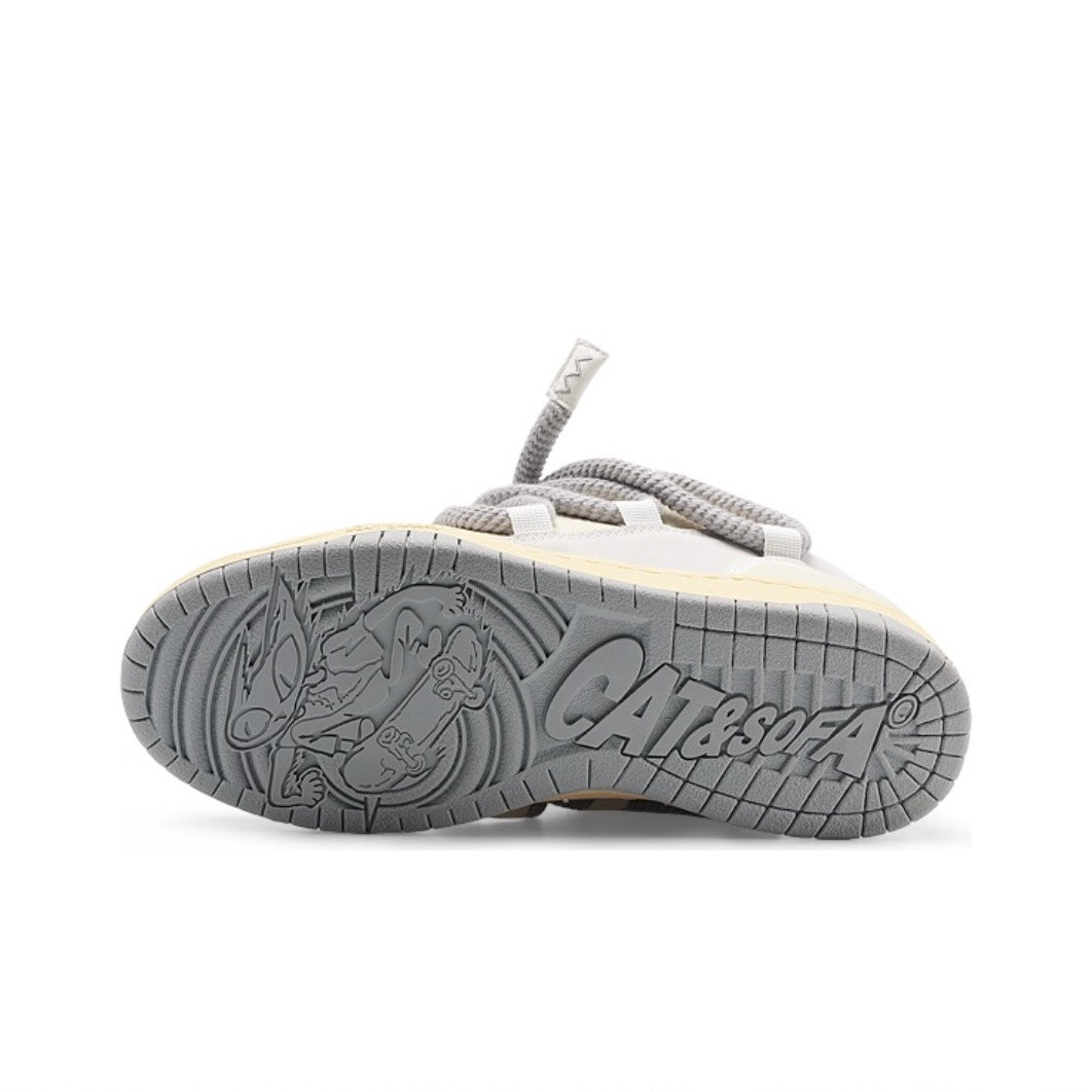 Cat Sofa sneakers have become a real discovery of 2023 in the world of street fashion. The mesh fabric allows the foot to breathe, and the lightweight vulcanized sole is perfect for running and fitness. The brand's motto is: “Create a burden-free wearing experience.” The sneakers are made of eco-leather, with small inserts of suede (also artificial) on the sides. The main detail is the rope laces, which give the shoes even more volume. By the way, the set also includes regular laces, and here’s the correct way to deal with them: pull out the cords and you will see that under them there are special holes for regular laces so that the shoes fit well on your feet and the heel doesn’t fly off when walking. Secure the sneaker with them, then return the ropes to their place. Done, you have not only stylish, but also comfortable shoes on your feet.